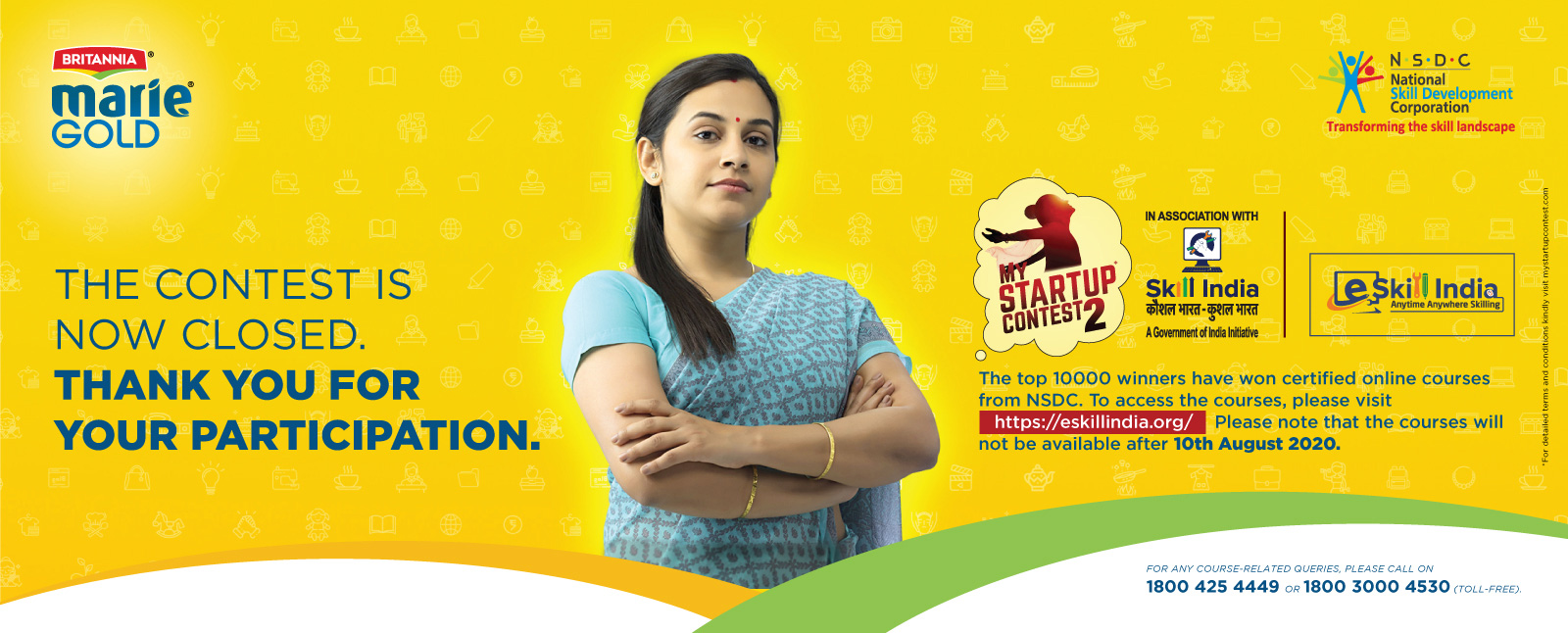 The contest closed on 31st May, 2020. The list of 10000 winners of the NSDC certified online skill development programmes will be announced shortly. Watch this space for more updates.